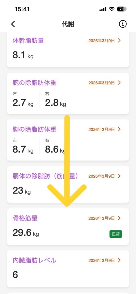 骨格筋量は一例で、他にもご自身が確認したい項目を自由にチェックできます。