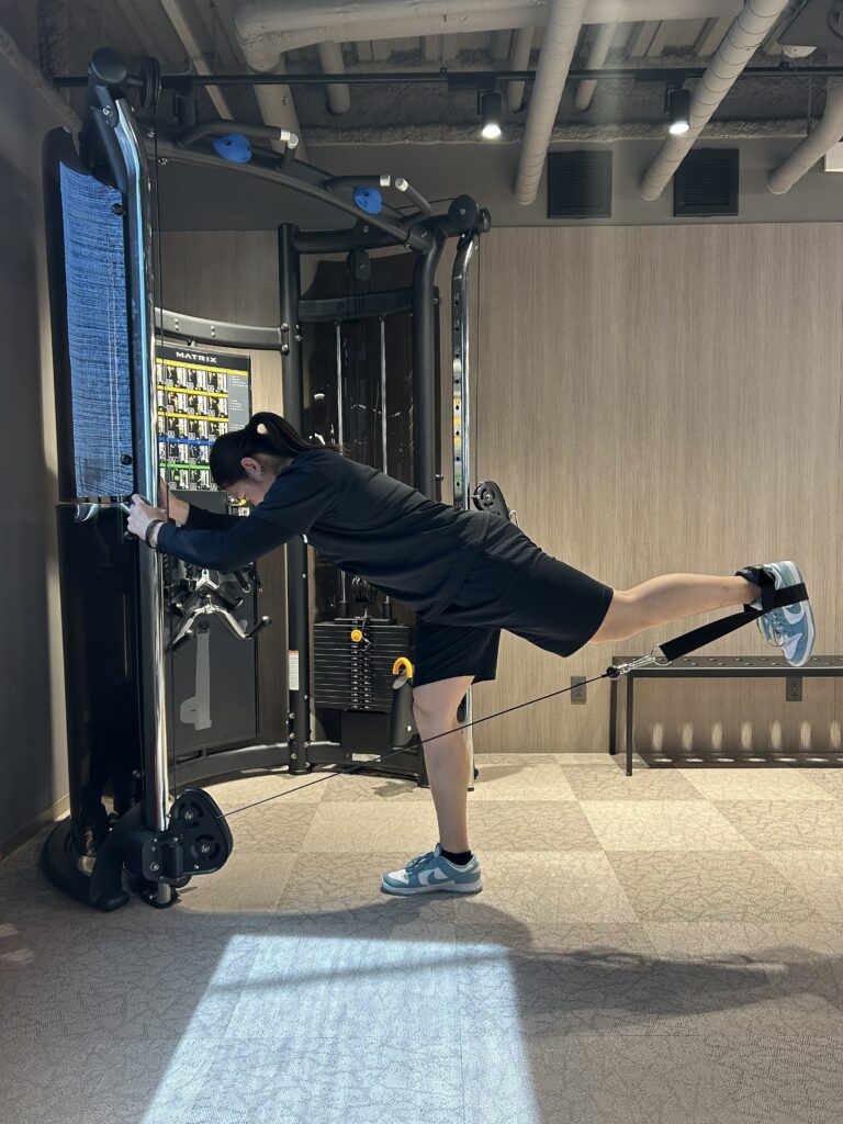 - 種目:ケーブルヒップエクステンション/ブルガリアンスクワット/EGYMレッグプレス